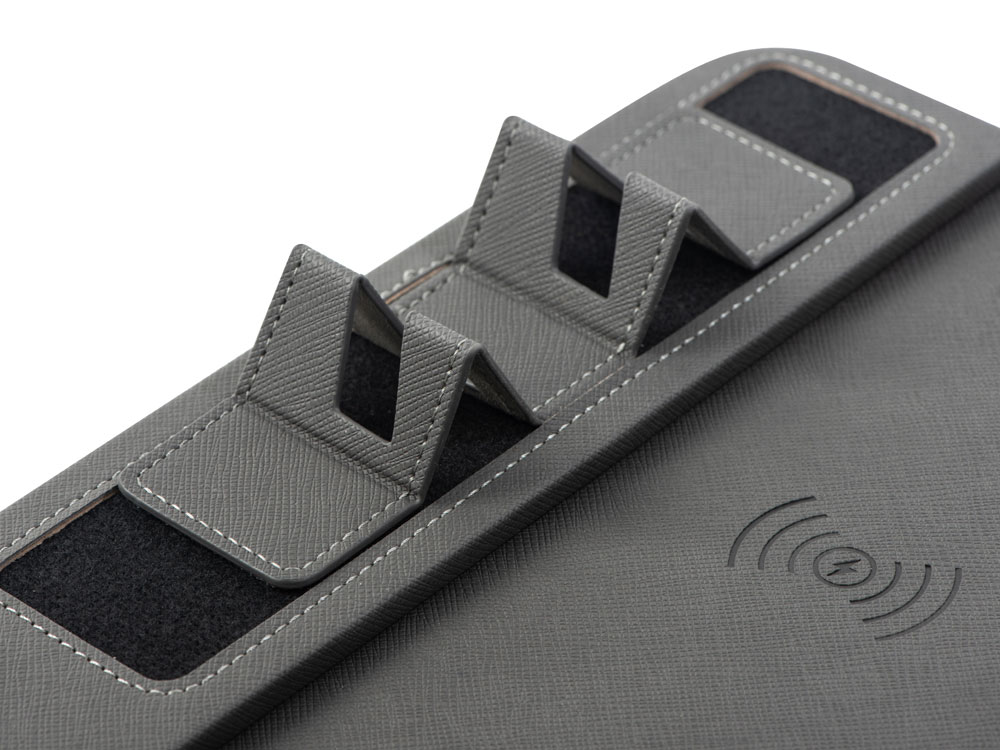 Настольный органайзер сочетает в себе сразу несколько устройств: беспроводное зарядное устройство, планшет со стилусом для заметок, подставку для смартфона и коврик для мышки. А еще нанесенное на Multi Pad лого подсвечивается! Заметки можно фиксировать без траты бумаги с помощью стилуса на безопасном матовом экране. LCD - экран оснащен функцией мгновенной очистки. Чтобы очистить поле планшета, нужно просто нажать на кнопку, расположенную возле экрана. Функция очистки по кнопке работает только при подключенном кабеле, при отключенном кабеле заметки никуда не исчезнут. Смартфон можно расположить для беспроводной зарядки в специальной отмеченной области или установить на специальные держатели для комфортного использования в наклоне. В комплекте - зарядный кабель USB-A – USB-C длиной 100см, инструкция и стилус. • поддерживает быструю беспроводную зарядку до 10 Вт • логотип наносится на специальное поле в левом верхнем углу — выгравированное изображение светится, если органайзер включен в сеть • подставка для смартфона раскладывается при помощи липучек • планшет для записей с возможностью моментальной очистки (стилус в комплекте) • универсальное компактное решение для рабочего стола • дополнительный USB выход