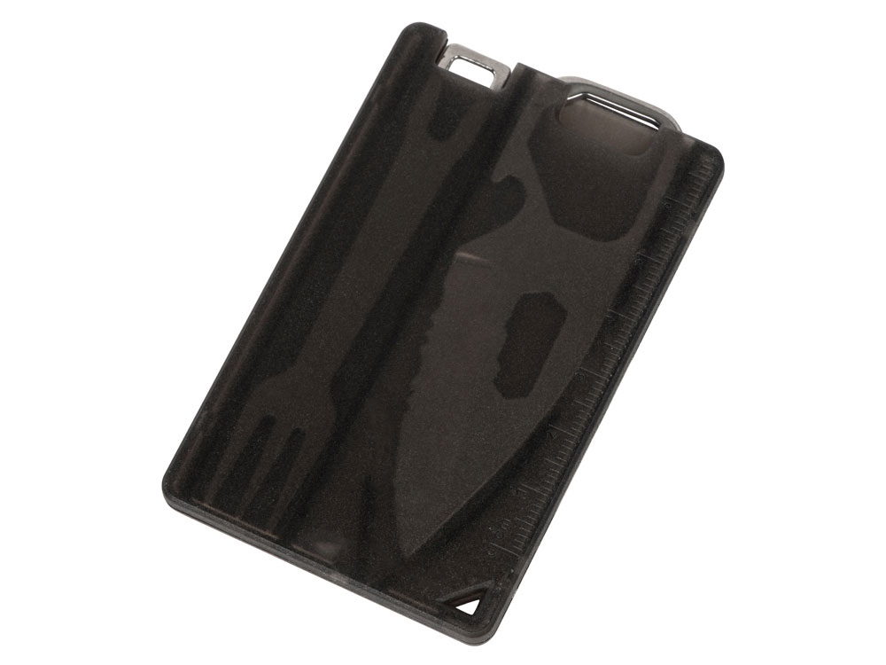 Компактный мультитул в форме карты. - Линейка - Открывашка для бутылок - Нож - Шестигранники - Вилка - Окно для петельки