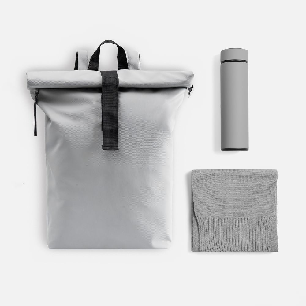 | Материал | рюкзак - полиэстер, 900D, с полиуретановой пропиткой; подкладка - полиэстер; термос - нержавеющая сталь, 304; покрытие софт-тач; шарф - акрил 100% |