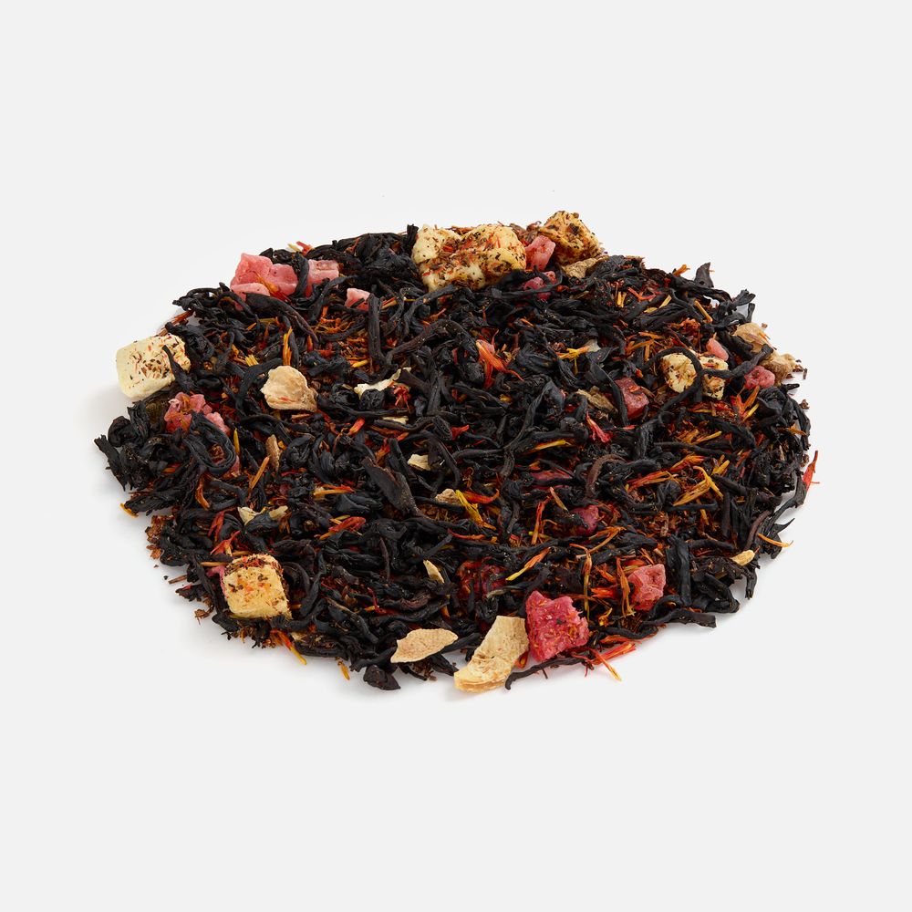 • Состав: чай черный кенийский листовой, цедра лимона, слайсы апельсина, манго сублимированный кусочки, кусочки ананаса, ройбуш, сафлор, ароматизатор «кокос и ананас»