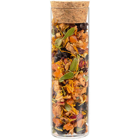 • фруктовый напиток «Фруктовый мир» (состав: каркаде резанный, сушеное яблоко, ежевика сублимированная, облепиха сублимированная, смородина сублимированная, малина сублимированная, календула, плоды черноплодной рябины, кожура шиповника, лист брусники, цукаты «папайя», ароматизатор «малина», ароматизатор «вишня»), вес 40 г.