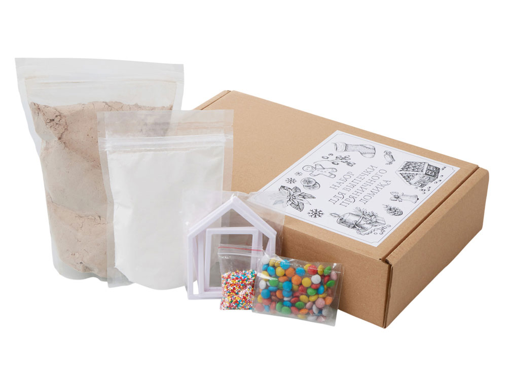 Погрузитесь в атмосферу зимней сказки с набором для создания ароматного пряничного домика. Всё, что нужно для праздничного творчества, собрано в одной коробке: пряности, формочки, украшения и пошаговая инструкция. С помощью набора легко испечь и собрать собственный пряничный домик — аромат корицы и имбиря наполнит дом теплом, а процесс станет настоящим новогодним ритуалом для всей семьи. Такой подарок порадует коллег, партнёров или близких: он объединяет, вдохновляет и дарит настоящую праздничную магию. В комплект входит: - смесь для выпечки имбирных пряников 1 шт. - смесь для приготовления глазури 1 шт. - комплект форм-вырубок для пряничного теста в форме домика декор для пряничного домика драже 1шт. - декор для пряничного домика сахарная посыпка 1 шт. - кондитерский мешок для глазури 2 шт. - рецепт для выпечки имбирного домика 1 шт.