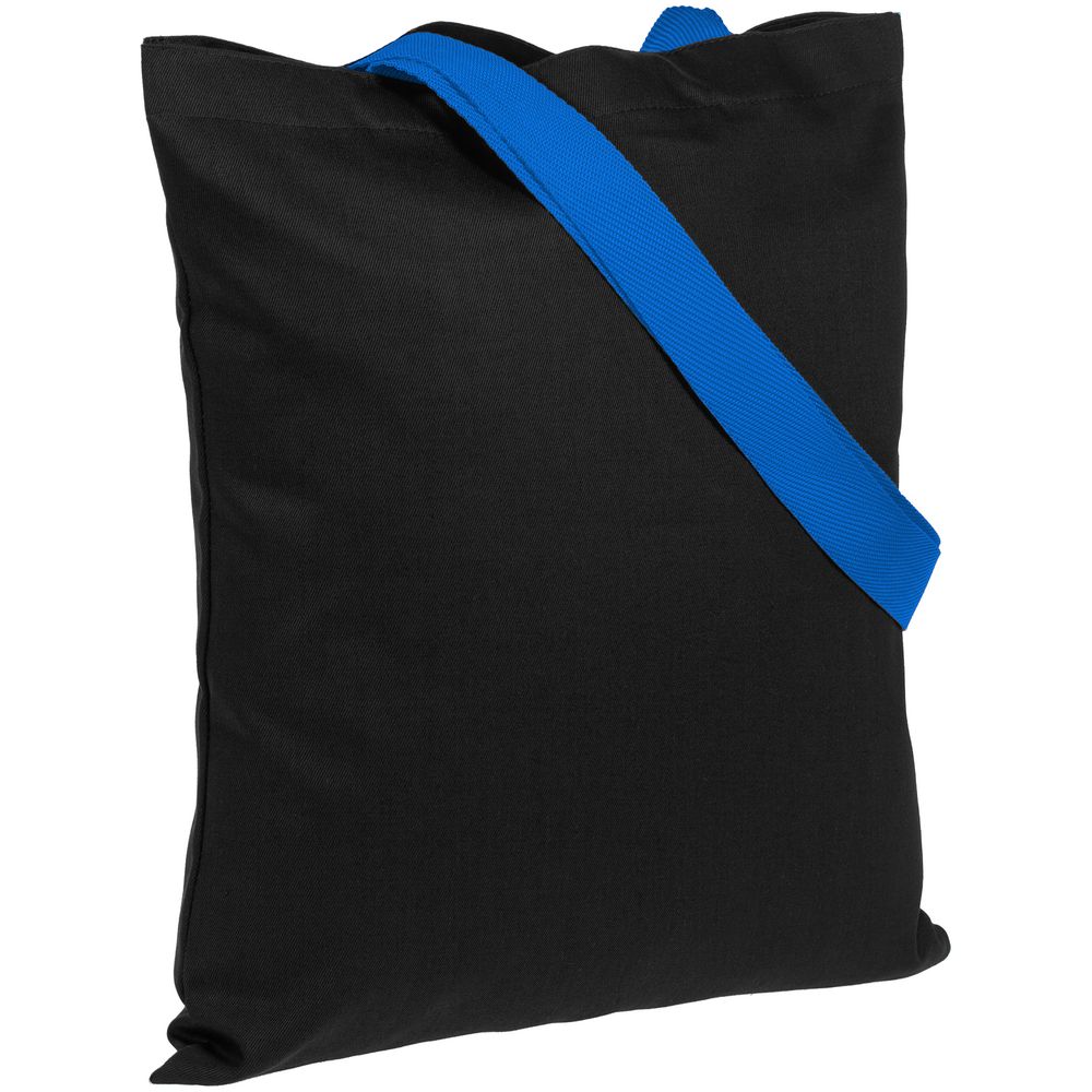 • Холщовая сумка BrighTone, черная с ярко-синими ручками