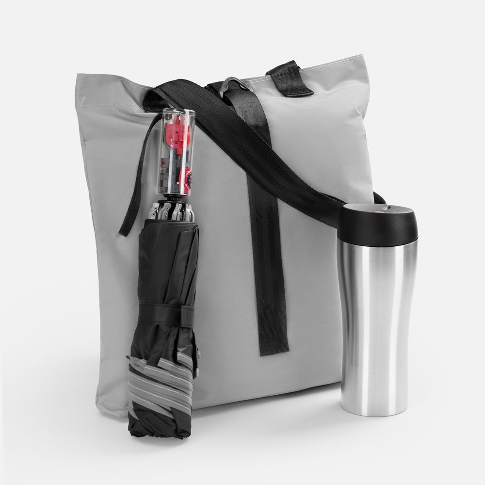 | Материал | купол - эпонж 190T, шток - металл, алюминий; спицы - стеклопластик; ручка - пластик; термостакан - нержавеющая сталь, 304 внутри, 201 снаружи; крышка - пластик; шопер - хлопок 65%, полиэстер 35%, плотность 260 г/м² |