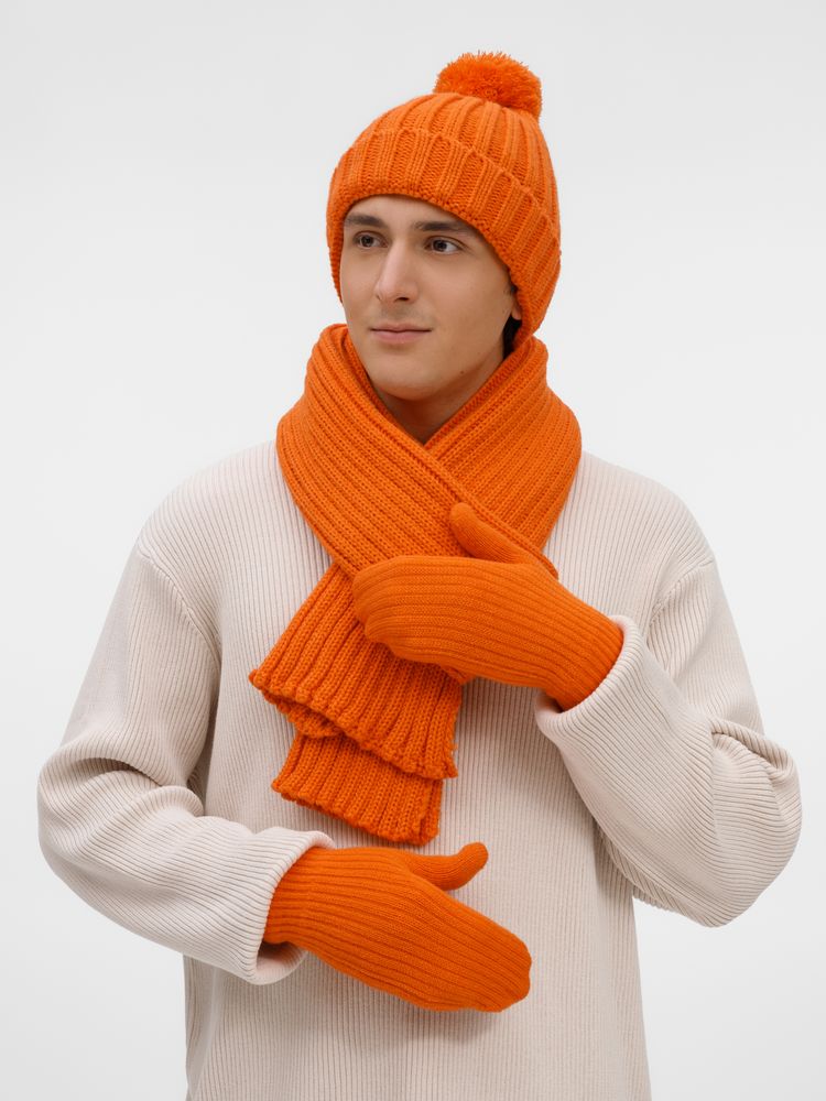 Яркий комплект из шапки, шарфа и варежек создан для тех, кто любит проводить зиму активно и с удовольствием.