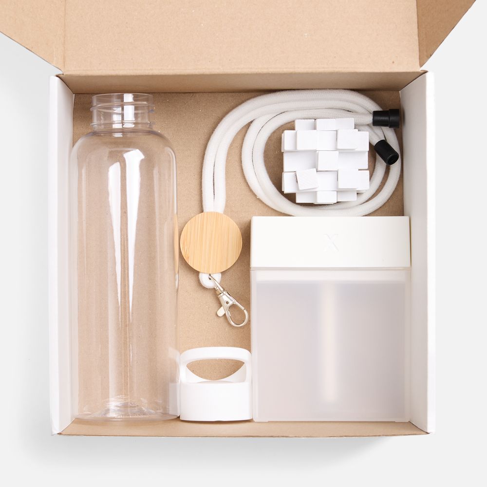 | Материал | увлажнитель - пластик; головоломка - дерево, мешок - хлопок; бутылка - пластик, ПЭТ; шнурок - дерево, хлопок; металл; коробка - микрогофрокартон, плотность 385 г/м² |