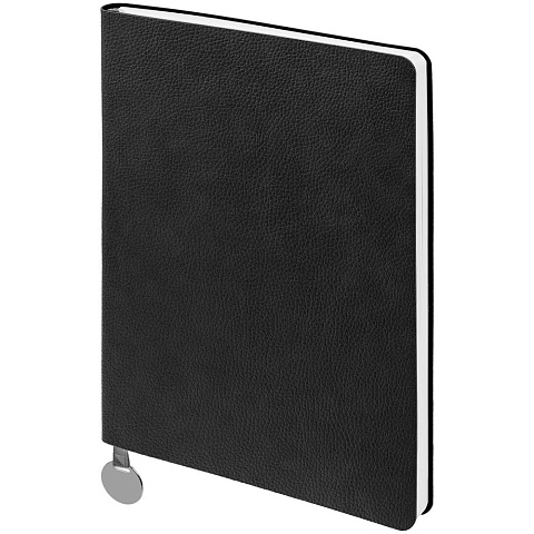 Недатированный ежедневник с гибкой обложкой из фактурного материала La Fite и металлическим шильдом на ляссе и ручка в тон, упакованные в подарочную коробку из дизайнерского картона.