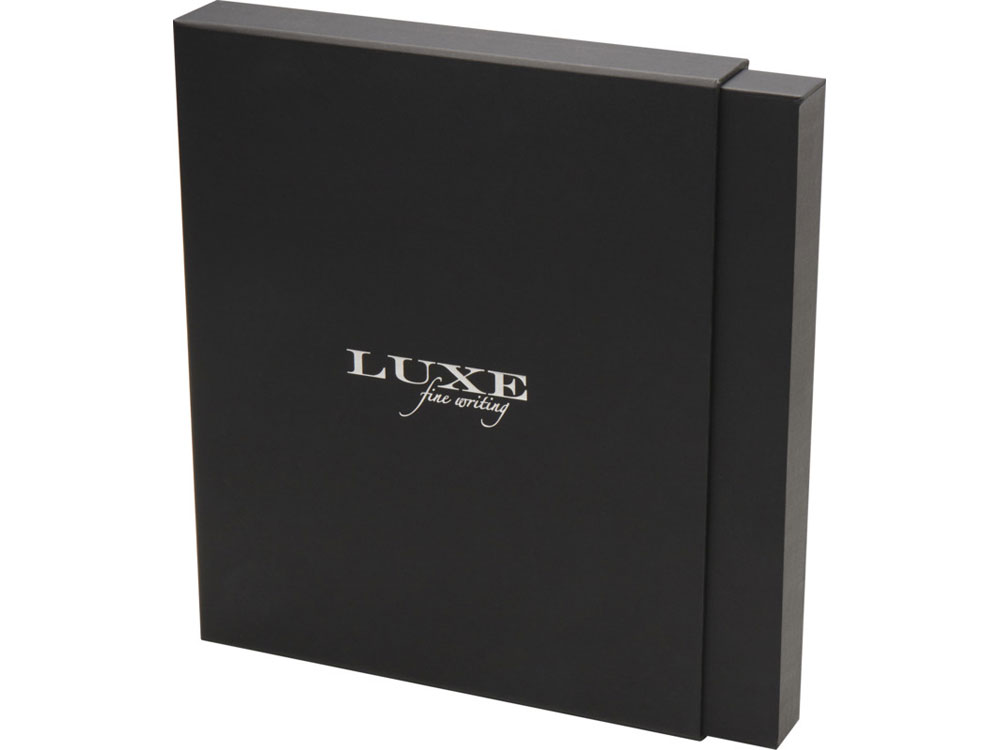 Набор Legato — это элегантное сочетание блокнота формата А5 и ручки-роллера. Ручка имеет верхний корпус из переработанной латуни, сертифицированной RCS, с серебряным хромированием, нижний корпус с цветным напылением, металлические хромированные аксессуары и логотип LUXE на среднем кольце. Цвет чернил: синий. Длина непрерывной линии: 400 метров. Диаметр пишущего узла: 0,7 мм. В комплект входит дополнительный стержень черного цвета. В блокноте 80 листов разлинованной кремовой бумаги плотностью 80 г/м², обложка из полиуретана, похожего на кожу, эластичная застежка, лента-закладка. Металлический шильд на эластичной застежке. Поставляется в картонной подарочной коробке.