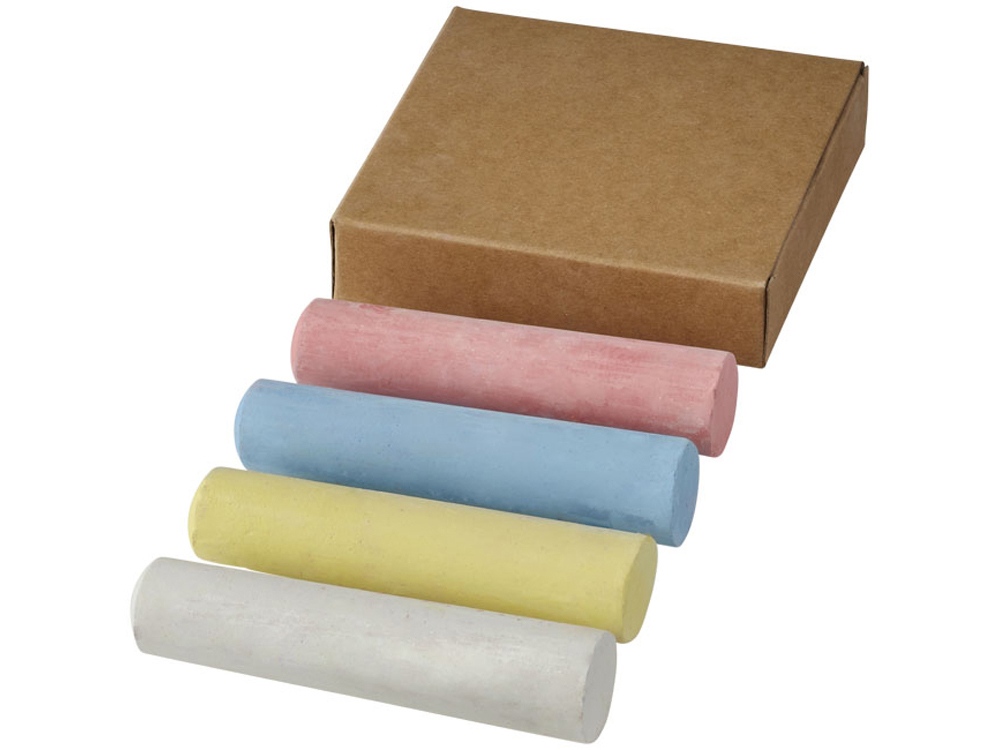 Набор мелков в натуральной коробке 4 единицы. 4 цветных мелка в бумажной коробке. Нанесение на элементах на предлагается. Бумага.