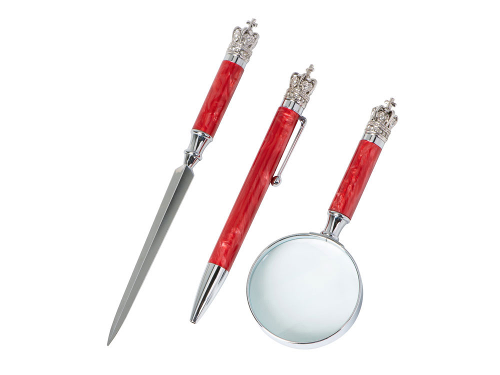 | Комплектность | ручка шариковая d1,1 х 13 см, лупа d5 х 12,1 см, нож для бумаг d1,1 х 16,5 см |