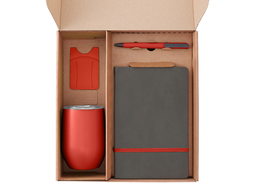Функциональный и сбалансированный набор для сотрудников, партнёров или клиентов — отлично подойдёт для welcome-боксов, тимбилдингов, внутренних мероприятий и корпоративных праздников. Состав набора: • Блокнот — удобный формат для записей, брифов и ежедневных задач • Ручка — классическая, с необычным слайдером и приятной soft-touch поверхностью делает письмо более комфортным. • Универсальная термокружка Sense понравится как любителям горячих напитков, так и холодных, ведь она сохраняет напитки горячими в течение 6 часов, а холодными - 12 часов. Подходит для офиса и поездок • Ланчбокс — компактный и легкий, для здоровых перекусов и экономии времени. Для дополнительной надежности ланчбокс перехвачен упругой резинкой, которая помогает удерживать крышку на месте. Эта же резинка служит фиксатором для столового набора, который идет в комплекте — вилки, ножа и ложки. • Силиконовый картхолдер для телефона с держателем крепится на заднюю панель смартфона и заменяет кошелёк в повседневной суете. Удобно для пропусков и карт. • Открытка — элемент персонализации, в комплект можно вложить индивидуальное послание • Универсальный ложемент обеспечивает аккуратное размещение и надёжную фиксацию элементов, делая набор эффектным и презентабельным при вручении. • Дополнительное преимущество — набор доступен в конструкторе наборов: компоненты можно заменить и собрать индивидуальный вариант под стиль компании или вкусы получателя. • Готовое решение для корпоративных подарков • Все элементы функциональны и актуальны для повседневного использования