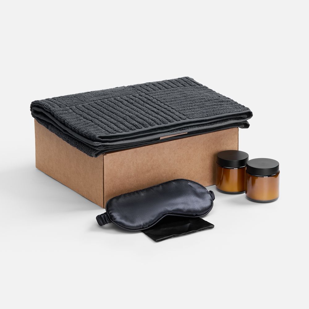 | Материал | полотенце - хлопок 100%, плотность 540 г/м²; подсвечник - стекло, крышка - пластик; свеча - парафин, соевый воск, парфюмерная композиция; маска - полиэстер 100%, сатин; коробка - микрогофрокартон, Т-23Е |