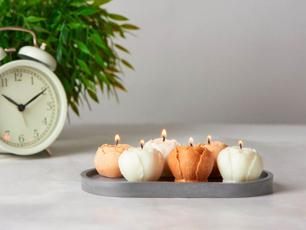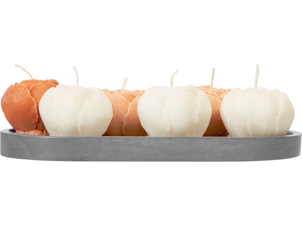 | Комплектность | три белых свечи пион, одна темно-персиковая свеча пион, две персиковые свечи пион, подставка гипсобетон, упаковочный материал |
