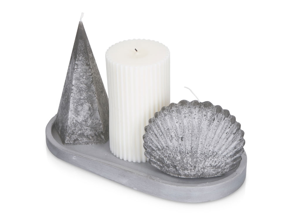 Этот набор из трех ароматических свечей непременно понравится приверженцам минимализма и стилей хай-тек, лофт, эко и скандинавского. Лаконичная геометрия, сочетающаяся с природным дизайном ракушки, натуральные молочный и неоднородный серый оттенки и подставка из гипсобетона смотрятся естественно, стильно и ненавязчиво. Благородный аромат черного перца и кожи, одновременно свежий и терпкий, подарит ощущение комфорта и уверенности. Свечи на 80% изготовлены из натуральных соевого и кокосового воска, не токсичны при горении и не вредны для дыхания. После того как свечи прогорят, подставку можно использовать для пало санто или других благовоний, а также для хранения различных мелочей или ювелирных украшений. - Минималистичный дизайн - Многофункциональная подставка из гипсобетона - Экосостав - Ручная работа