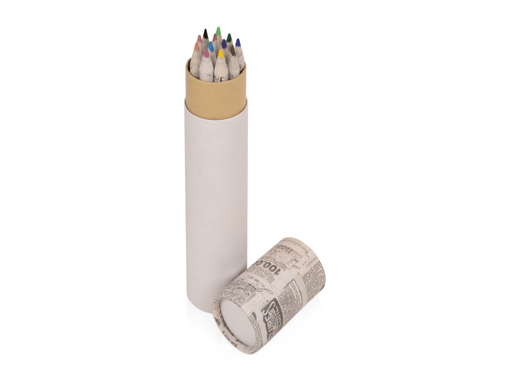 Набор цветных карандашей, выполненных в оригинальном корпусе из имитации газетной бумаги. Благодаря пеналу в форме тубуса удобно хранить или брать с собой. Набор состоит из карандашей 12 цветов.