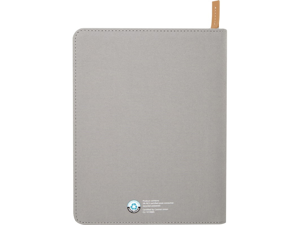 Папка Nomumi формата А5 с закругленными углами — удобный и необходимый предмет в офисе, изготовленный из переработанного пластика. Содержит 64 листа кремового цвета плотностью 80 г/м2, застежку-молнию, петлю для ручки и карман-гармошку. Переработанный PET пластик, бумага.