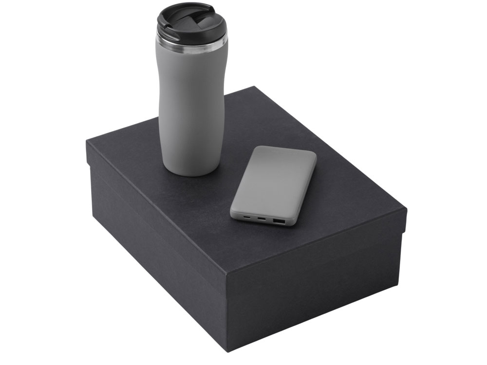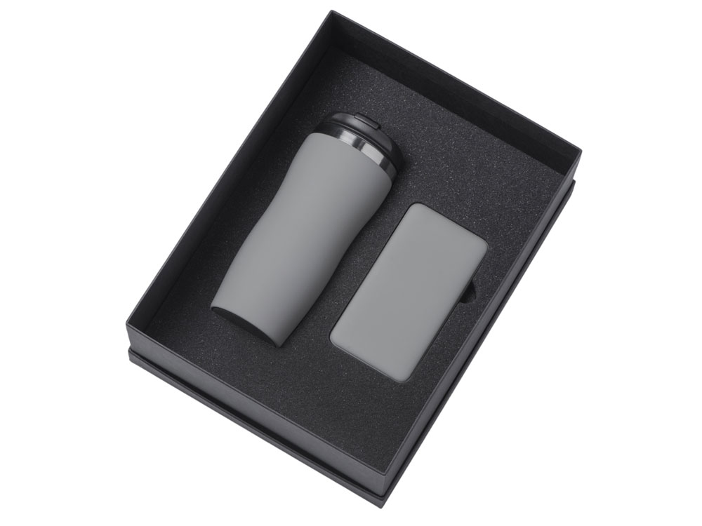 Подарочный набор c вакуумной термокружкой и повербанком С2, серый