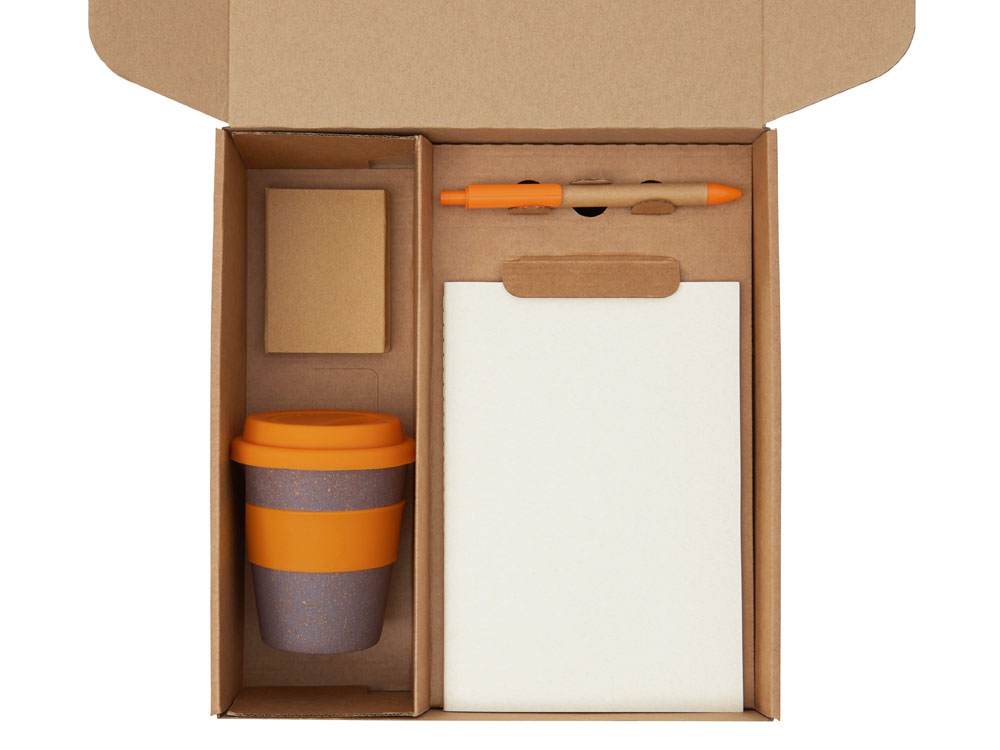 | Материал товара | блокнот- бумага из переработанных тетра-паков, ручка- картон, пластик, стакан- 50% бамбуковое волокно, 50% полипропилен, коробка- картон |