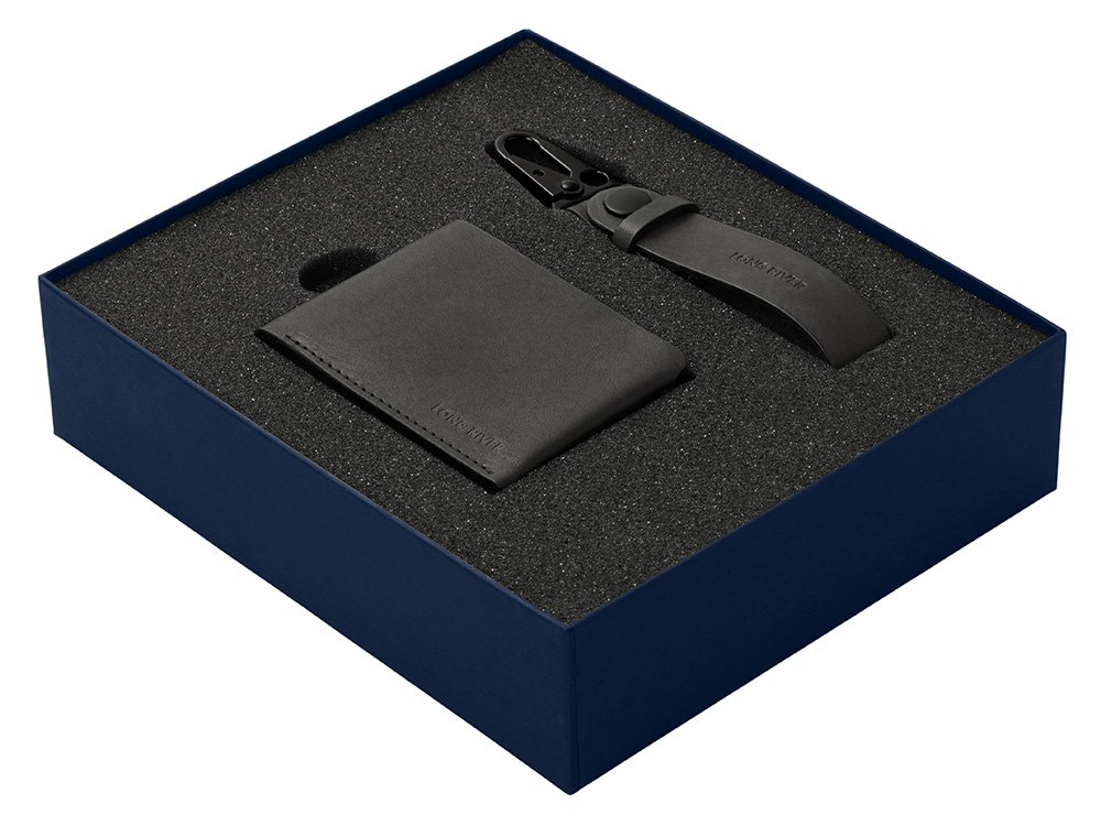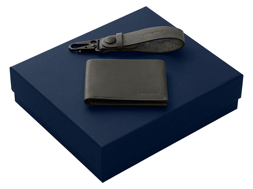 Подарочный набор Long River: кошелек, ремешок для ключей, синяя коробка