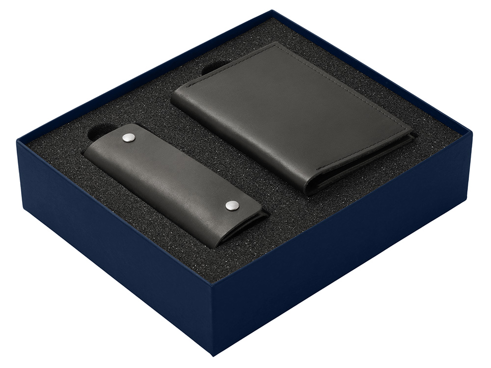 Подарочный набор Long River: обложка для паспорта, ключница (без лого Long River), синяя коробка