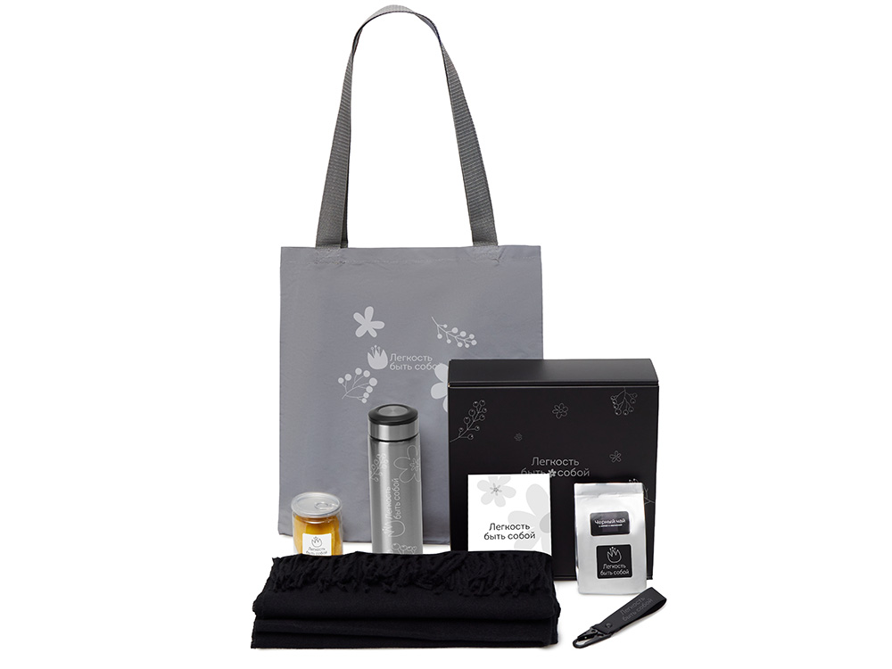 Подарочный набор Re:f. Walk с палантином, шоппером и термосом, черный купить оптом и в розницу с нанесением логотипа в Ростове-на-Дону