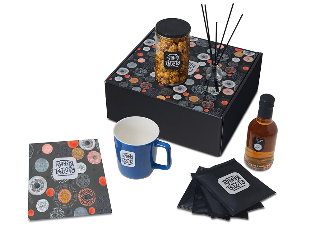| Материал товара | диффузор - стекло, кофе в дрип пакете - пластик, кружка - костяной фарфор, попкорн - пластик, металл, мешок - нетканый материал (спанбонд), коробка - картон |