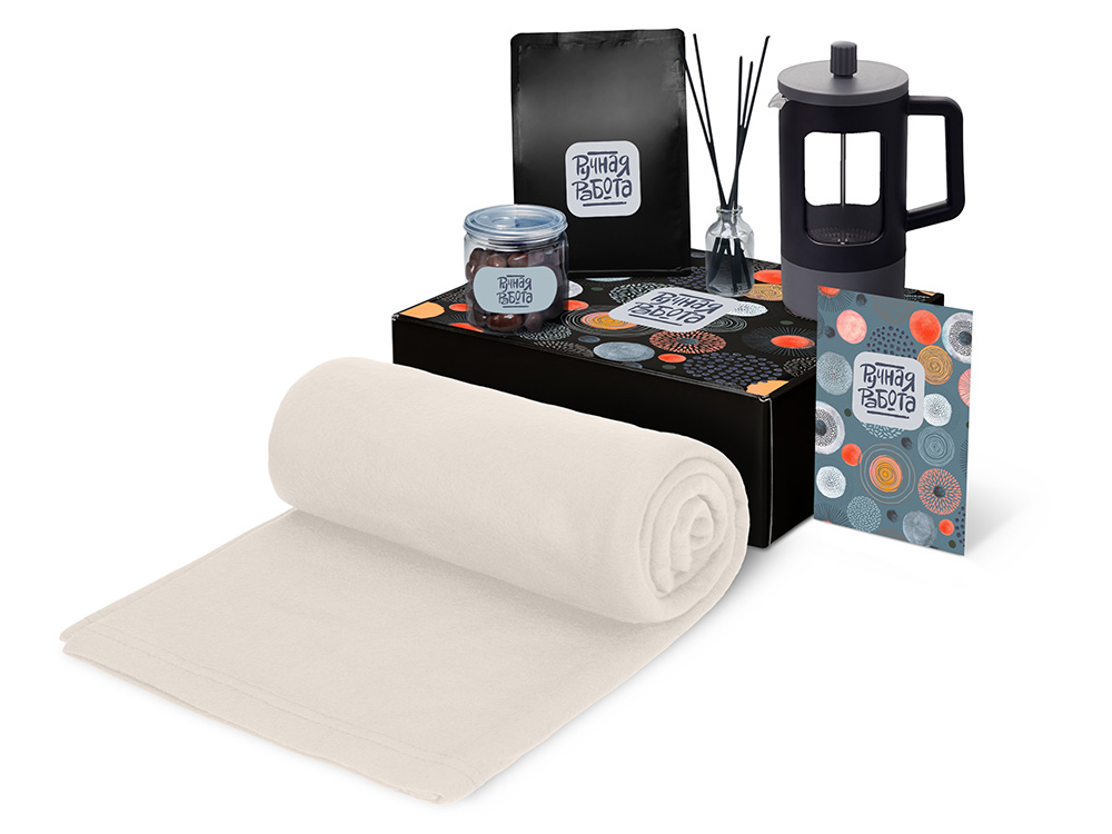 Подарочный набор Re:y. Vive с пледом, френч-прессом и кофе купить оптом и в розницу с нанесением логотипа в Ростове-на-Дону