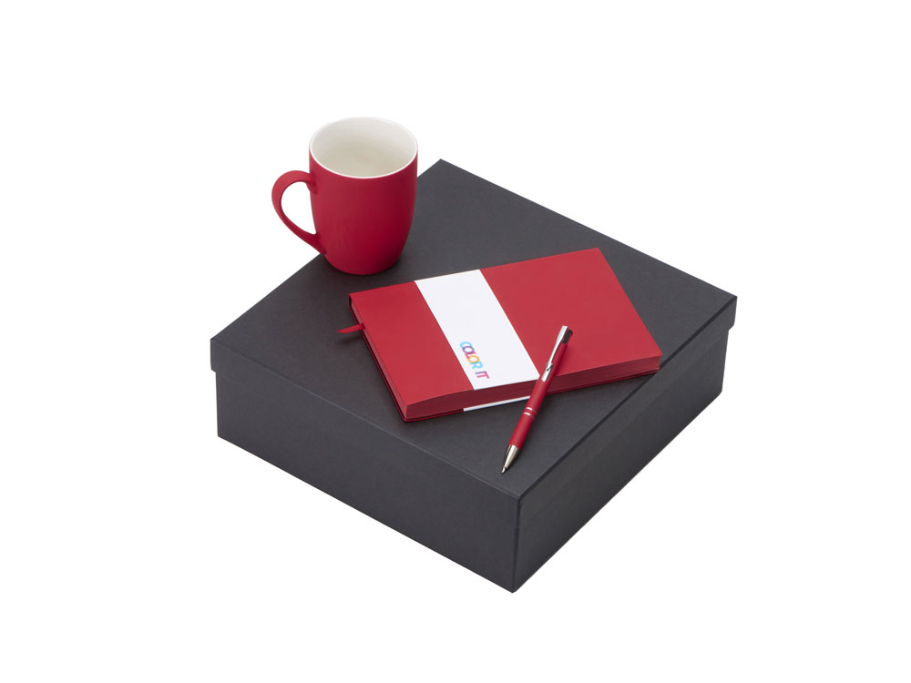 Color It — линейка, в которую входят хиты мерча в десяти самых популярных цветах. Еще никогда собрать сет под свой брендбук не было так просто. Широкая цветовая палитра серии позволяет создать идеальный набор в едином оттенке Pantone. Все товары имеют тактильно приятное покрытие софт-тач. Сет поставляется в коробке: мы продумали все, включая подарочную упаковку, за вас — осталось нанести лого! Фарфоровая кружка с удобной ручкой брендируется методом гравировки, поэтому нанесение будет долговечным и не сотрётся при мытье кружки. Бизнес-блокнот в твёрдой обложке имеет ляссе в тон обложки и среза. Бумажный блок разлинован в линейку и выполнен из бумаги, полученной из древесины из специальных восполняемых лесных ресурсов, имеет сертификат FSC. Шариковая ручка имеет сменный стержень, поэтому такой мерч прослужит дольше обычной одноразовой ручки, долго напоминая о вас клиентам. - объём кружки: 300 мл; - блокнот А5 128 листов; - ручка с необычным слайдером; - подарочная упаковка из картона, оклеенного дизайнерской бумагой уже включена в набор