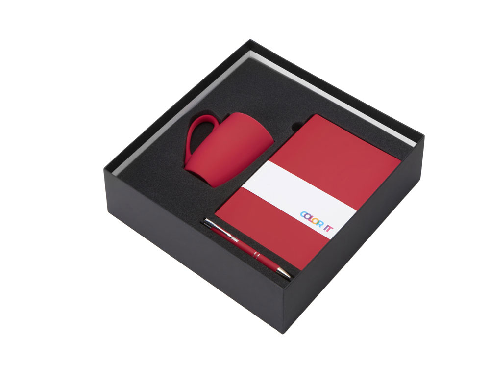 | Материал товара | блокнот - полиуретан с покрытием софт-тач, картон, ручка - алюминий с покрытием софт-тач, кружка - фарфор с покрытием софт-тач, коробка - картон |