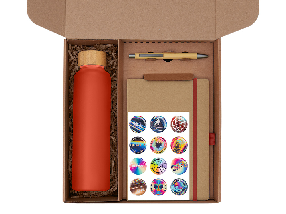 Набор Wooden станет отличным подарком для сотрудников, клиентов и партнёров, подчеркнёт внимание к их комфорту и заботу о деталях. Он уместен как корпоративный подарок на праздники, юбилеи и деловые мероприятия, так и в качестве welcome-набора для новых коллег. Набор объединяет всё необходимое для комфортного рабочего дня: Блокнот для идей, заметок и планов на день; Ручка, которая всегда под рукой; Стеклянная бутылка для воды объемом 600 мл., чтобы поддерживать водный баланс в течение дня; Бамбуковая подставка для телефона, чтобы держать гаджет в поле зрения во время работы или видеозвонков; Набор стикеров — для ярких акцентов и персонализации вещей Универсальный ложемент обеспечивает аккуратное размещение и надёжную фиксацию элементов, делая набор эффектным и презентабельным при вручении. Дополнительное преимущество — набор доступен в конструкторе наборов: компоненты можно заменить и собрать индивидуальный вариант под стиль компании или вкусы получателя.
