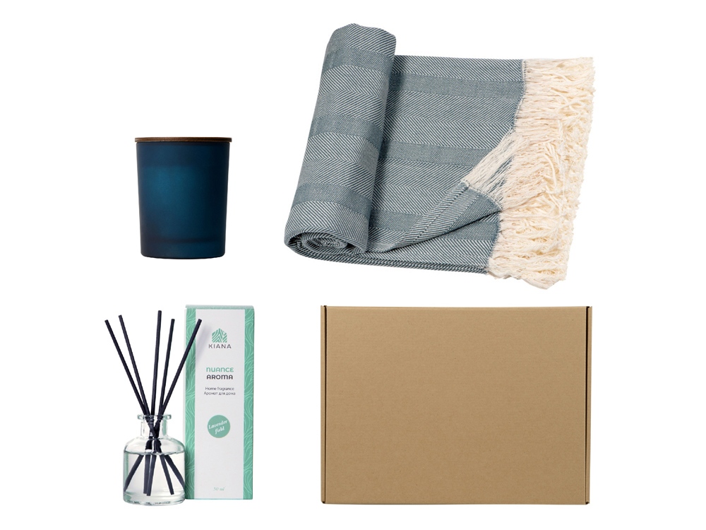 Подарочный набор с пледом, свечой и диффузором, синий