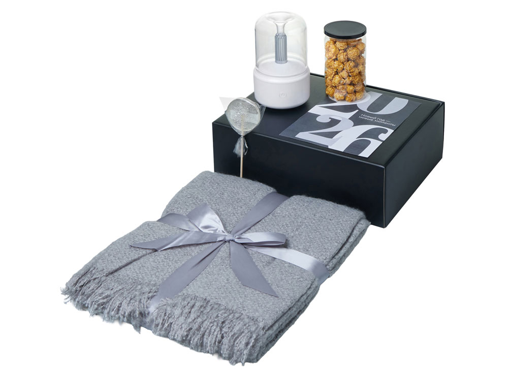 Новый год — новые моменты, которые хочется прожить по-настоящему. Вспомните детство, когда мы никуда не спешили, наслаждались каждым мгновением и делали то, что нам нравилось. Наборы серии Re: напоминают: важнее всего человек, а не его роль. Они дарят возможность замедлиться, отложить гаджеты и насладиться настоящим. Пусть новогоднее время станет паузой, наполненной тишиной, теплом и моментами, которые восстанавливают перед новым годом. Каждый набор — как мини-ритуал: согреться, замедлиться, почувствовать себя, поблагодарить и восстановиться после года, полного скорости, дедлайнов и шума. Это не о деловом спасибо — это о настоящем внимании. Это о том, чтобы сказать: Я вижу, сколько ты сделал. А теперь — время для тебя. Re:Snug — о мягком уюте и спокойных вечерах. Укутайтесь в плед, включите увлажнитель, чтобы воздух был свежим и мягким, и устройтесь в своём маленьком уголке комфорта. Попкорн и леденец — маленькое сладкое дополнение, которое создаёт настроение уюта. Этот набор превращает каждый вечер в момент, который принадлежит только вам.