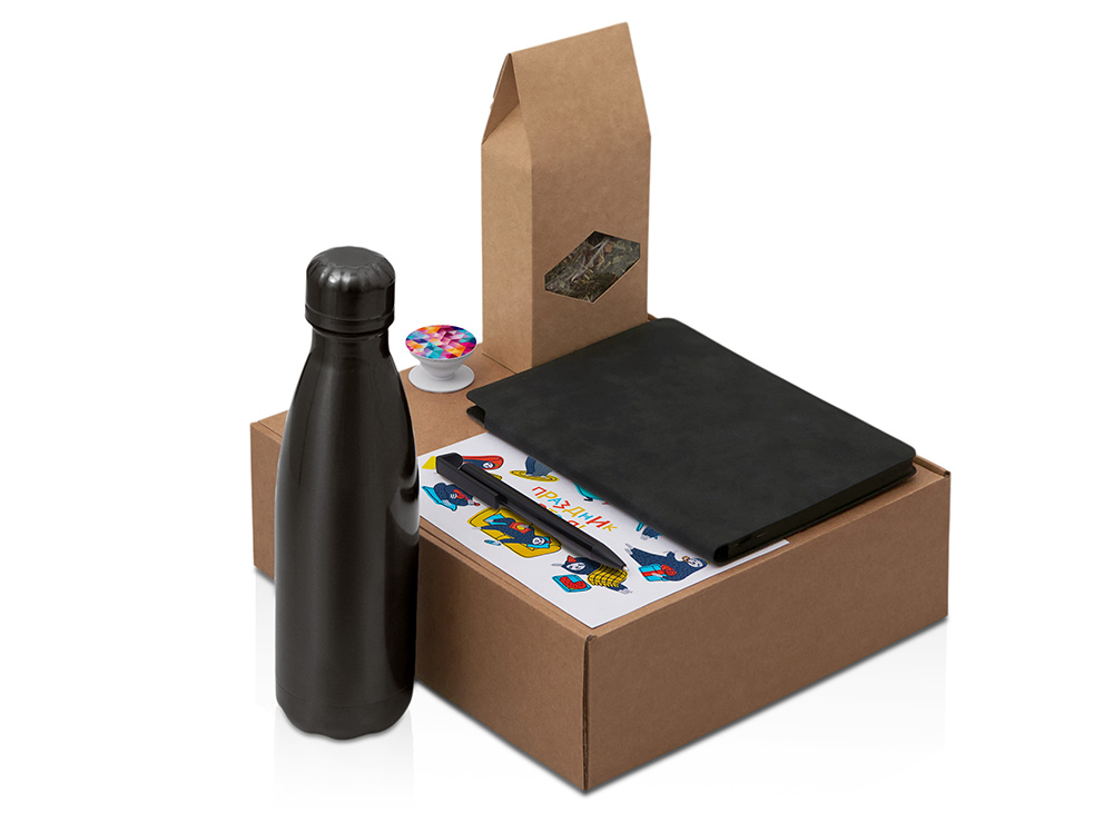 | Материал товара | бутылка - нержавеющая сталь, ручка - металл, пластик, блокнот- полиуретан, FSC бумага, держатель для телефона - пластик, чай - крафт-пакет, коробка - картон |
