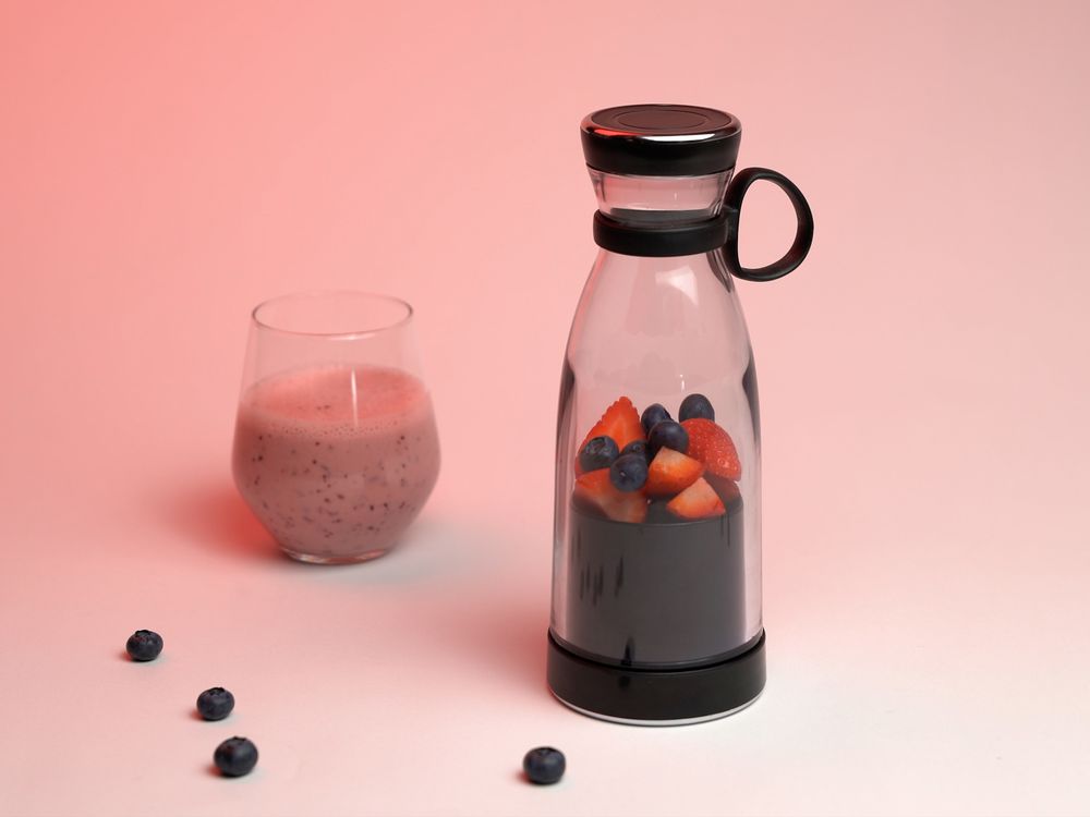 Портативный блендер предназначен для приготовления фруктовых и овощных смузи, а также протеиновых коктейлей из натуральных продуктов и готовых смесей. Устройство работает от аккумулятора: его удобно использовать и дома, и в автомобиле, и в поездках.