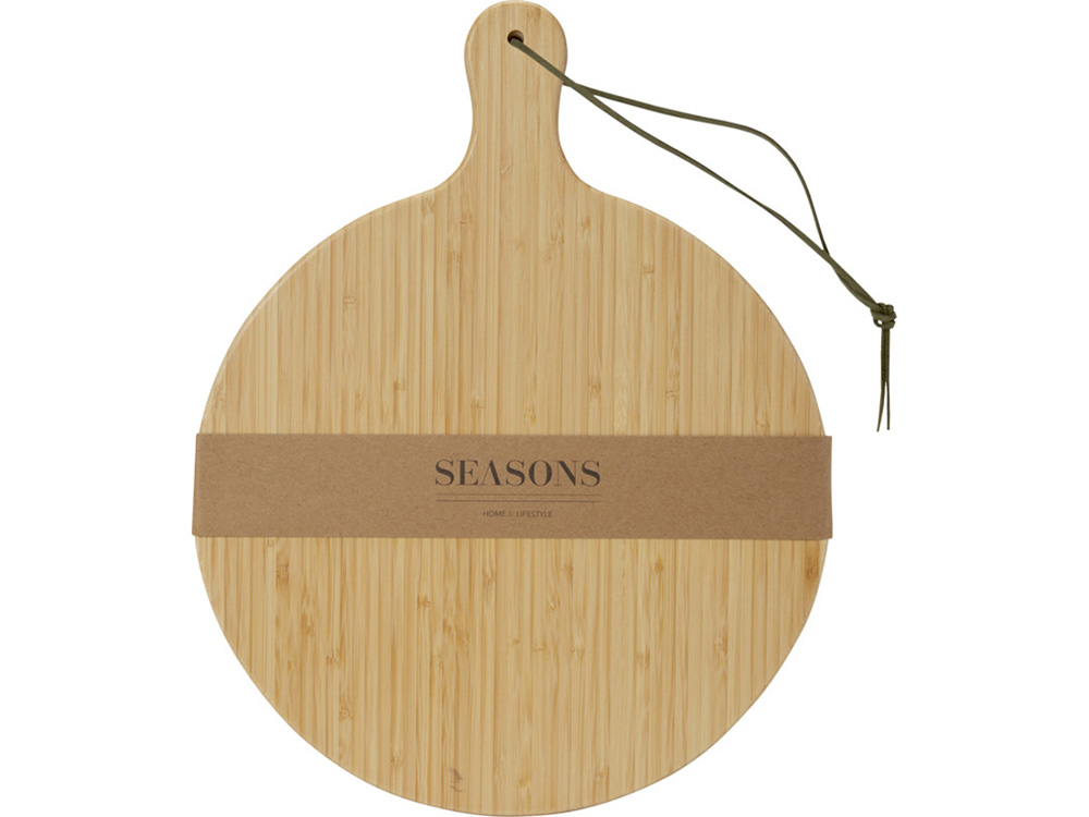 Разделочная доска Delys изготовлена из бамбука и идеально подходит для частных лиц и предприятий, которые предпочитают более экологичные товары. Диаметр доски: 30,5 см. Длина ручки: 8 см. Толщина доски: 1,4 см. Не подходит для микроволновой печи или посудомоечной машины.