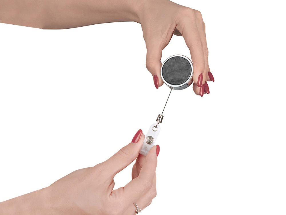 Ретрактор может быть не просто средством для закрепления бейджа или пропуска, но и стильным деловым аксессуаром, компонентом welcome pack или набора для конференций, который будет продолжать фирменный стиль вашей компании при помощи брендирования. Благодаря металлическому корпусу и вставке из экокожи он смотрится очень элегантно и строго. Основное преимущество заключается в том, что он не запутается и отлично подойдёт людям, которые не любят ничего носить на шее. Его можно удобно закрепить на одежде, за ремень или карман брюк, например. При этом, когда пропуск нужно приложить к электронному считывающему устройству, достаточно просто слегка потянуть и будет получена необходимая длина. Металлический ретрактор с вставкой из экокожи станет частью запоминающегося и полезного бизнес-подарка, особенно в сочетании с карманом для бейджей из такого же материала. - Стильный дизайн - Удобство использования - Надёжность Favor — серия товаров, выполненных из экокожи одинаковой текстуры, что позволяет составлять из этой продукции стильные бизнес-сеты в едином стиле.