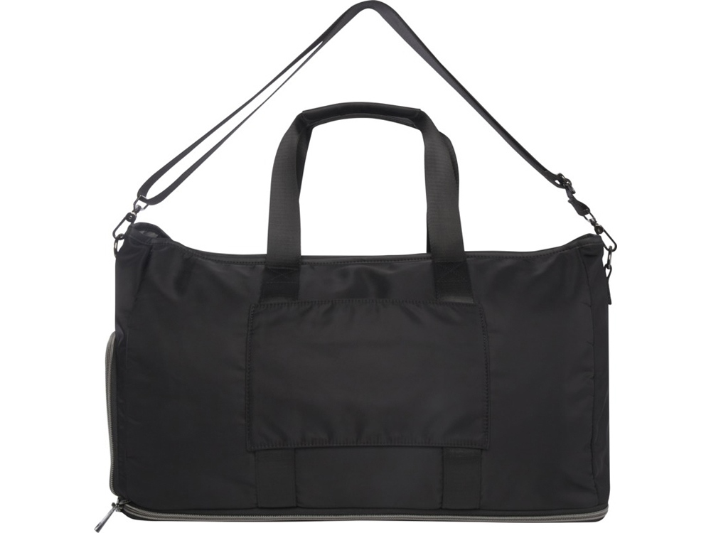 Расширяемая спортивная сумка Rhine легко трансформируется и становится стильной для различных случаев благодаря своему элегантному дизайну и универсальности. Изготовлен из высококачественного переработанного нейлона, сертифицированного согласно GRS, с мягкой подкладкой из переработанного РЕТ-пластика и элементами из высококачественной полиуретановой кожи. В спортивной сумке имеется просторное основное отделение с большим герметичным карманом из термополиуретана, 2 кармана на рукавах, специальное отделение для обуви, надежный потайной карман на задней стороне (также выполняющий функцию ремня для крепления к ручке чемодана) и съемные плечевые ремни, которые можно регулировать для максимального комфорта. Что действительно отличает эту спортивную сумку, так это ее расширяемый слой, объем которого можно увеличить до 42 литров. Емкость: 35-42 литров. Выдерживает вес до 20 кг. Не содержит ПВХ. GRS certified recycled nylon.