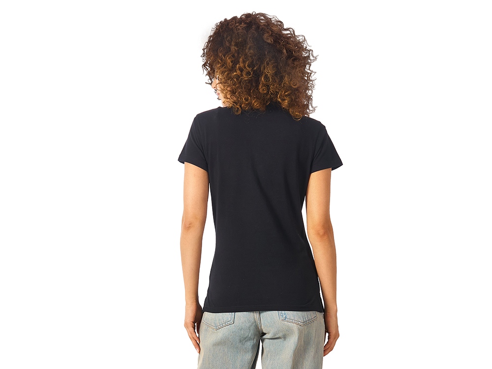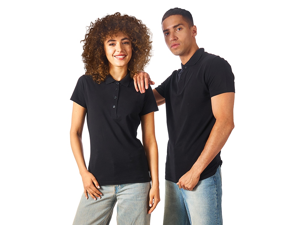 Женская рубашка-поло First. Воротник 1х1. Обшивка внутри воротника. Мужская и детская модели с 2 пуговицами, женская - с 4 пуговицами. Пуговицы с гравировкой в тон. Пике, 100% хлопок. 160 г/м2.