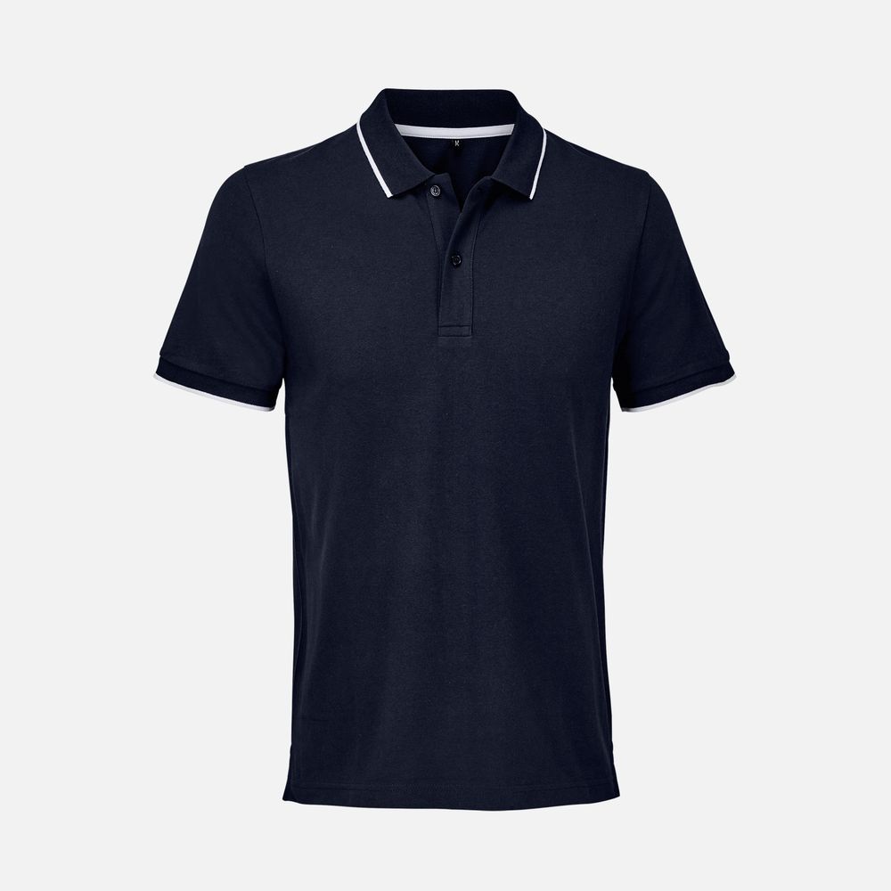 Рубашка поло унисекс Palermo, темно-синяя с белым купить оптом и в розницу с нанесением логотипа в Ростове-на-Дону
