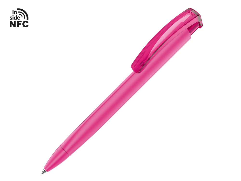 Пластиковая шариковая ручка Trinity K transparent Gum soft-touch с чипом передачи информации NFC обеспечивает быстрый доступ к рекламной информации. Для передачи данных посредством технологии NFC смартфон или планшет, которые поддерживают данную технологию, необходимо поднести к запрограммированной на ручке метке NFC (метка расположена под логотипом NFC). После этого на смартфоне или планшете откроется запрограммированная ссылка на сайт, ролик или начнется загрузка другой информации (заранее загруженной в сеть интернет). Таким образом метка работает как код, при чтении которого смартфон или планшет открывает определенную программу, активирует функцию или ссылку. Можно запрограммировать на метке NFC адрес сайта, каталог и другие рекламные материалы и раздавать вместо визиток. Метка NFC активирует одно действие на смартфоне или планшете. Внимание, программирование метки производится только компанией UMA. Если вы разместили заказ на ручку с меткой, но не прислали информацию, которую необходимо на нее записать, в заказе может быть отгружена ручка без чипа NFC.