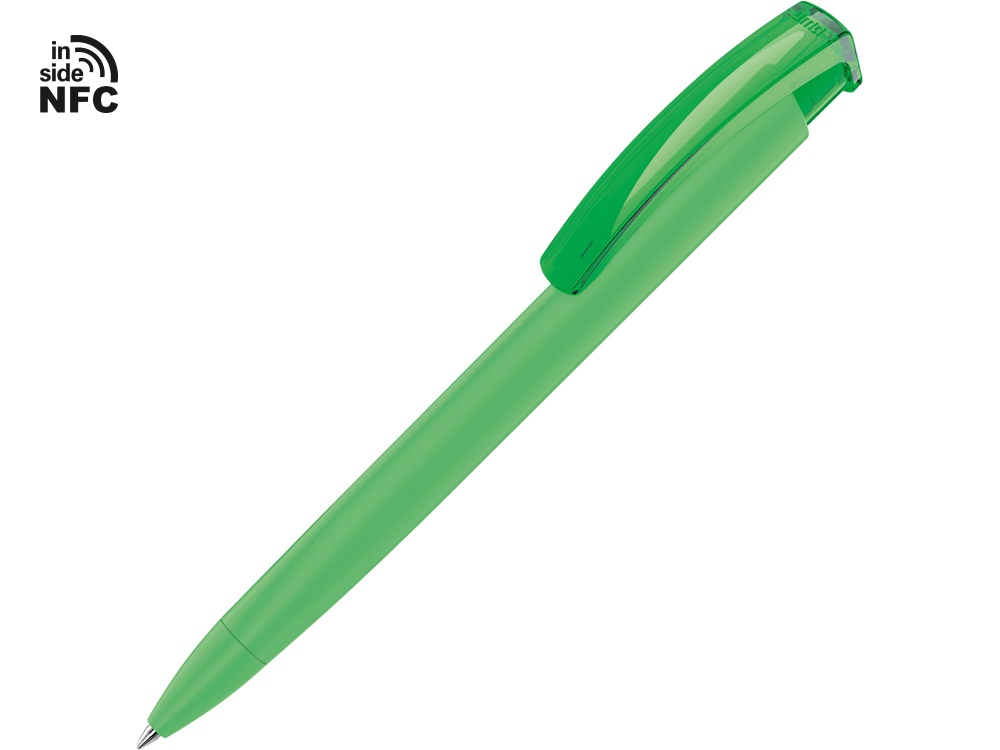 Пластиковая шариковая ручка Trinity K transparent Gum soft-touch с чипом передачи информации NFC обеспечивает быстрый доступ к рекламной информации. Для передачи данных посредством технологии NFC смартфон или планшет, которые поддерживают данную технологию, необходимо поднести к запрограммированной на ручке метке NFC (метка расположена под логотипом NFC). После этого на смартфоне или планшете откроется запрограммированная ссылка на сайт, ролик или начнется загрузка другой информации (заранее загруженной в сеть интернет). Таким образом метка работает как код, при чтении которого смартфон или планшет открывает определенную программу, активирует функцию или ссылку. Можно запрограммировать на метке NFC адрес сайта, каталог и другие рекламные материалы и раздавать вместо визиток. Метка NFC активирует одно действие на смартфоне или планшете. Внимание, программирование метки производится только компанией UMA. Если вы разместили заказ на ручку с меткой, но не прислали информацию, которую необходимо на нее записать, в заказе может быть отгружена ручка без чипа NFC.