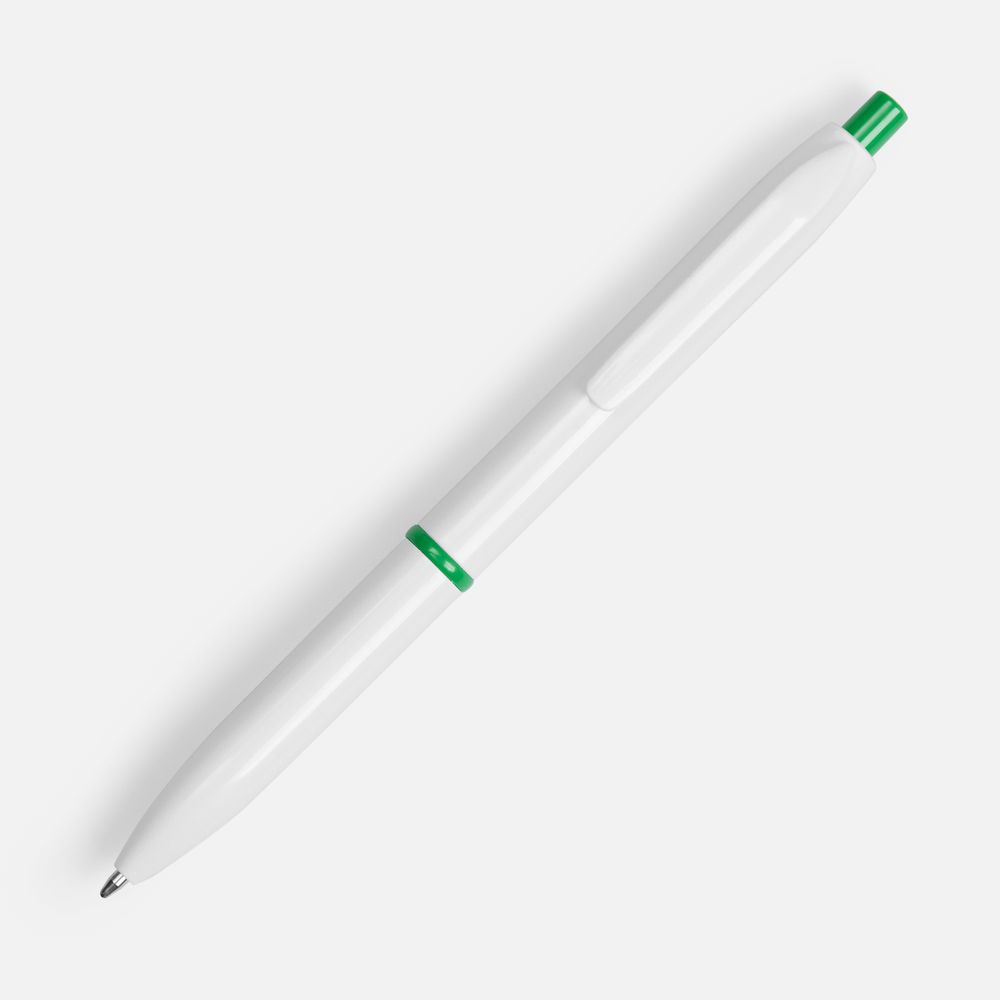 Ручка шариковая Bright Pop, белая с зеленым купить оптом и в розницу с нанесением логотипа в Ростове-на-Дону