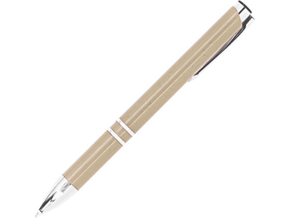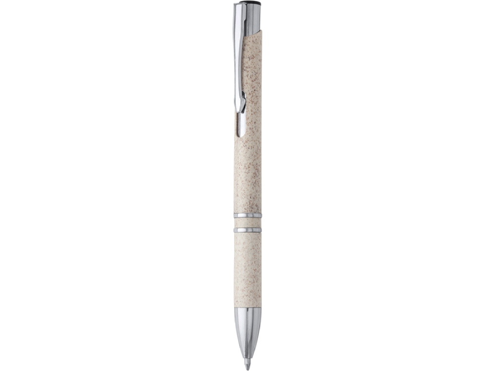 Ручка из пшеничного волокна и АБС-пластика с серебристой отделкой. Синие чернила.