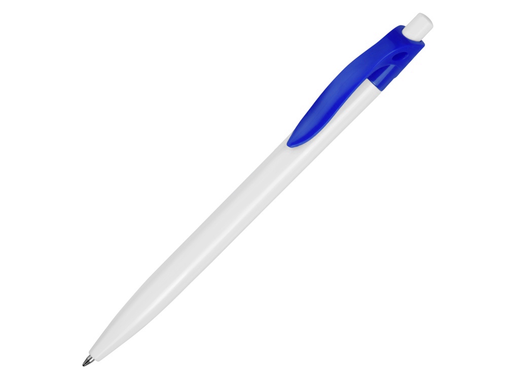 Стильная пластиковая ручка с ярким цветным клипом и белым корпусом отлично подойдет для нанесения логотипов и рекламной информации. Нажимной механизм.