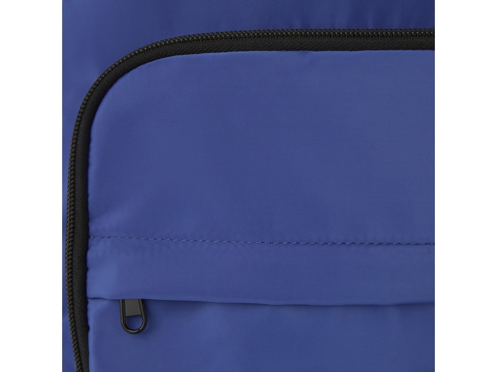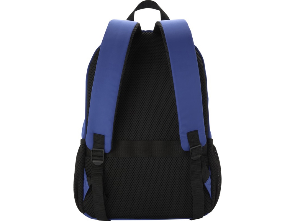 Рюкзак Trend Plus изготовлен из сертифицированной согласно GRS переработанной мягкой и немнущейся ткани и качественной подкладки из RPET. Рюкзак оснащен отделением для ноутбука диагональю 15, отделением-органайзером, передними карманами на молнии, боковыми эластичными сетчатыми карманами и сетчатой вентилируемой задней частью с лямкой для крепления к ручке чемодана. Регулируемые плечевые ремни для оптимального комфорта при ношении. Объем: 20 литр. Выдерживает вес до 10 кг. Не содержит ПВХ. GRS certified recycled polyester.