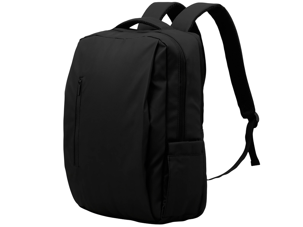 Непромокаемый бизнес рюкзак с двумя вместительными отделениями и карманом на молнии спереди. В одном отделении расположены карман для ноутбука и планшета, в другом органайзер и много пространства для одежды и других вещей на случай деловой поездки. На сетчатой спинке расположен потайной кармана на молнии для документов и личных вещей и ремень для крепления на ручку чемодана. Сверху удобная мягкая ручка для переноски. Лямки регулируются по длине.