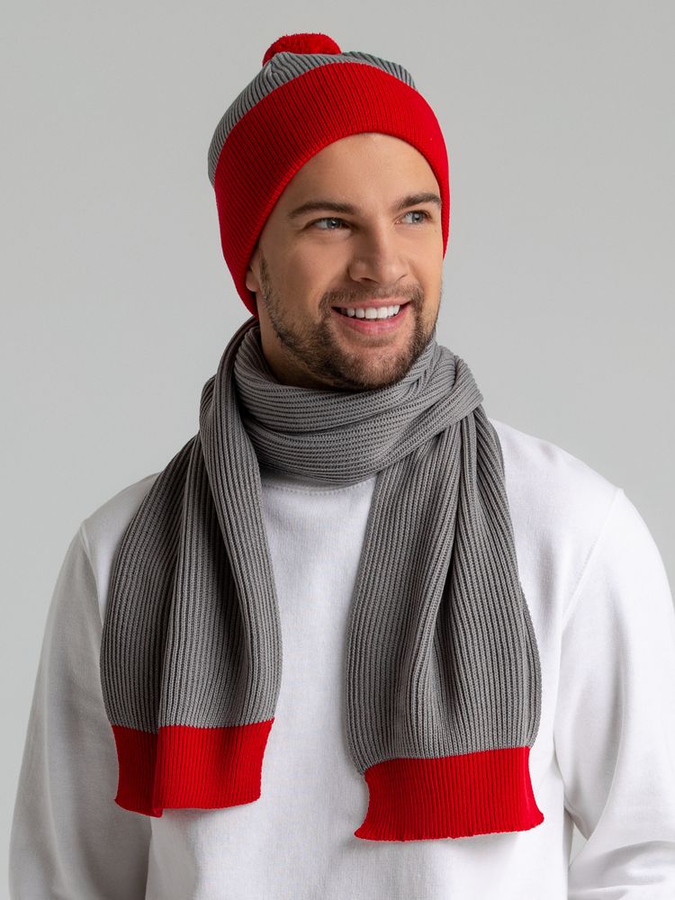 Шапка Snappy, светло-серая с красным купить оптом и в розницу с нанесением логотипа в Ростове-на-Дону