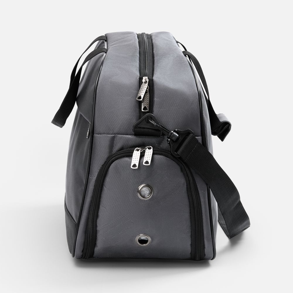 Усиленное дно с рифлеными ножками защищает сумку от износа, а боковое отделение с вентиляцией идеально подходит для обуви. Сумка оснащена удобными ручками и регулируемым плечевым ремнем, что обеспечит комфорт при переноске.