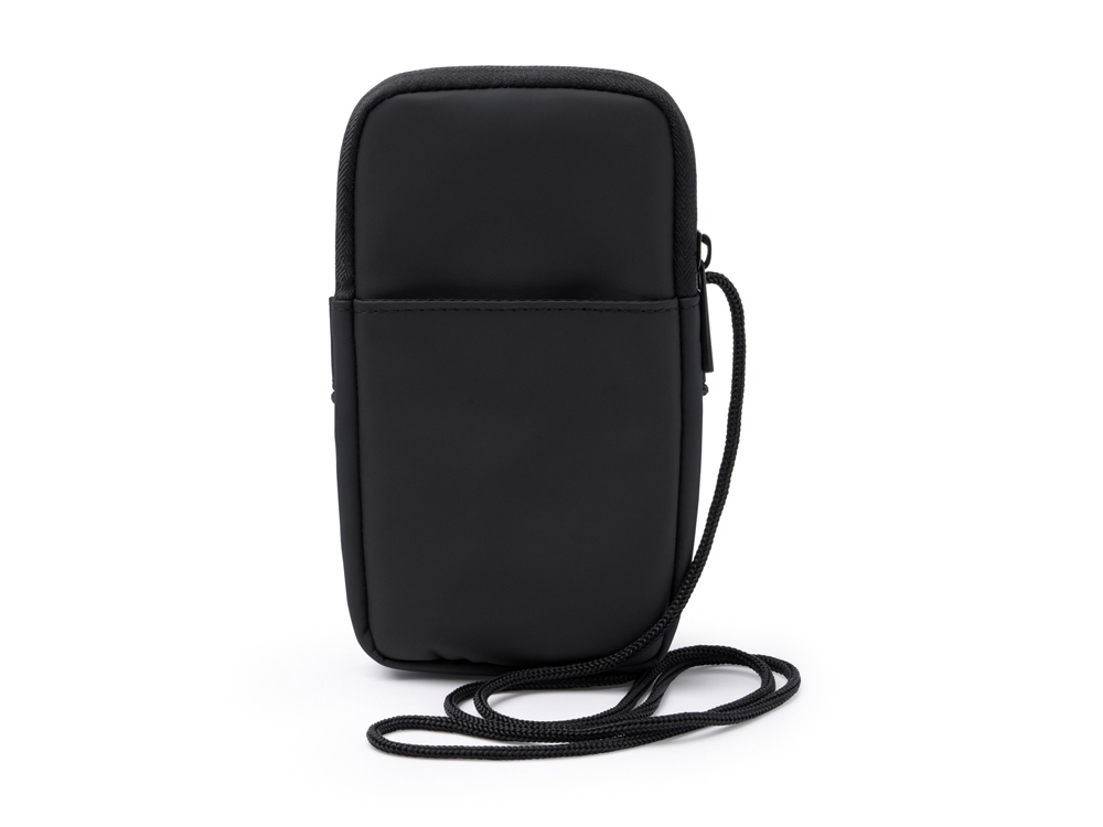 Сумка для мобильного телефона из искусственной кожи. Основное отделение закрывается на молнию. Внешний карман и регулируемый ремешок для переноски.