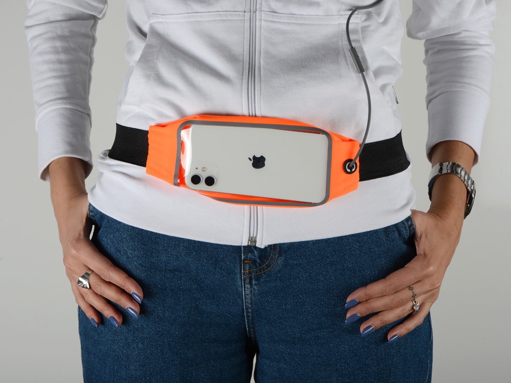 Сумка на пояс с отделением для смартфона размером до 16 х 8 см и выходом для наушников.